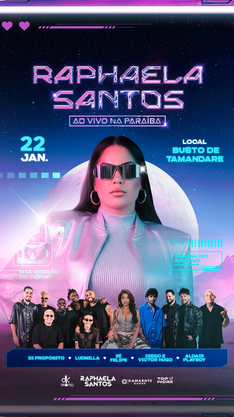 A escolha da Paraíba reforça a forte ligação de Raphaela Santos com o Nordeste e com um público que acompanha sua trajetória de forma intensa e fiel. O repertório reúne grandes sucessos da carreira e canções que representam essa nova fase artística, marcada por ousadia, evolução e verdade.